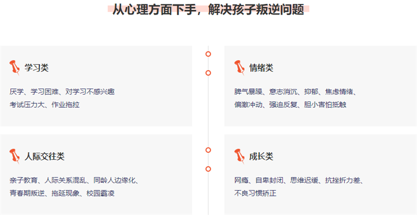 2、学校主要针对各类沉迷网瘾、早恋、性格懦弱、自卑自闭、亲情冷漠、叛逆、厌学、逃学、离家出走、自理能力差等问题少年进行教育,学校进行正规化,全方位的改造,同时对青少年进行心理疏导和行为矫正。叛逆少年游戏网瘾戒除学校着重于“问题孩子”教育和“问题家庭”教育,双管齐下的教育原则,青少年教育培训学校的心理教育包括封闭式住校引导、个性化实战性家庭教育服务、“辅导后”教育、文化补习和个性化引导四大内容。