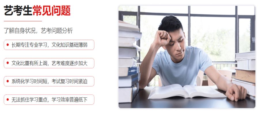 艺考文化课课程内容 第一轮 | 基础回归 (12-3月): 系统梳理核心知识,弥补漏洞; 第二轮 | 专题突破 (3-4月): 针对重点题型专项训练,提升解题能力; 第三轮 | 模拟冲刺 (5-6月): 全真模拟+专家讲座,调整最佳状态。 艺考文化课学校优势 【清北专家带队,全程把关】 孩子备考有“大靠山”!北大清华背景专家定期给孩子讲高考政策、学科新知识,康博士团队从制定学习计划到监督学习全程参与,还每月和老师一起教研,把清北先进教学方法带进课堂,帮孩子找准学习方向。 【清北学霸方法直接学】 不用摸索走弯路!学校把清北学霸的高效学习法,像时间管理、错题整理这些技巧,拆成简单好操作的课程教给孩子。还有清北学长学姐线上线下分享经验,同学间互相交流学习,让孩子轻松掌握高效学习方法。 【高效课堂,学习更轻松】 上课不枯燥!采用“三标五环”教学法,课前布置预习检测,课上用有趣的案例引导孩子主动思考,课后布置适合不同水平的作业。老师能通过查看孩子作业情况,随时调整教学,让课堂每一分钟都有用。 【一人一套提分方案】 每个孩子都是“VIP”!入学就给孩子做全面测试,包括知识、学习习惯和心理状态,根据结果老师、班主任和心理老师一起给孩子制定专属提分计划,还会根据孩子学习情况每周总结、每月调整,精准提分。