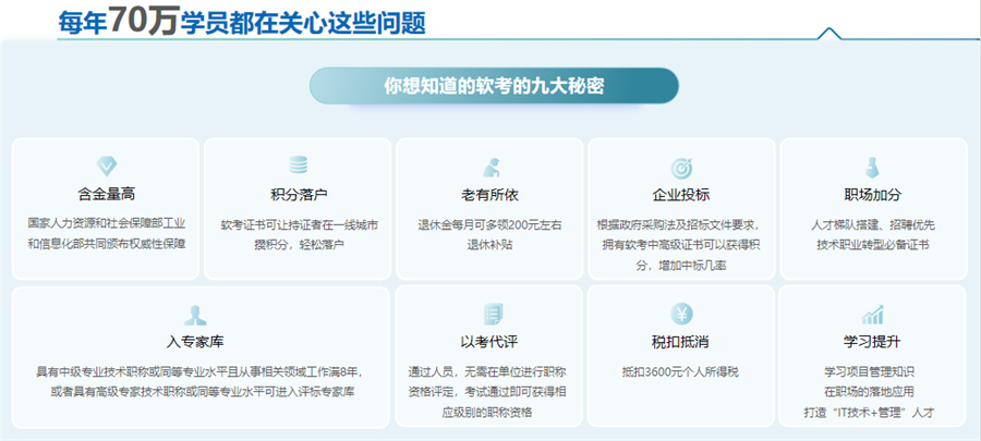 软考既职业资格考试,又称为职称资格考试。以国家政策为支持、在职人员需求为导向,提升个人综合工作能力,通过考试获得证书的人员,表明其已具备从事相应专业岗位工作的水平和能力。小编整理了国内10大计算机软考中高级考试培训机构排行榜一览,快来看看吧。
