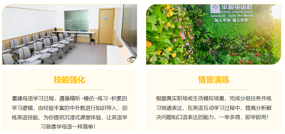 平和英语村采用全封闭、浸泡式纯英语环境,从课堂到生活全程英文交流,真正做到沉浸式学习。面对传统学习效率低、开口少的问题,我们能够为您量身定制提升方案。在商务英语学习上,“学商务英语,就来珠海平和英语村”,我们用沉浸式环境帮你快速建立英语思维,提升职场表达能力。