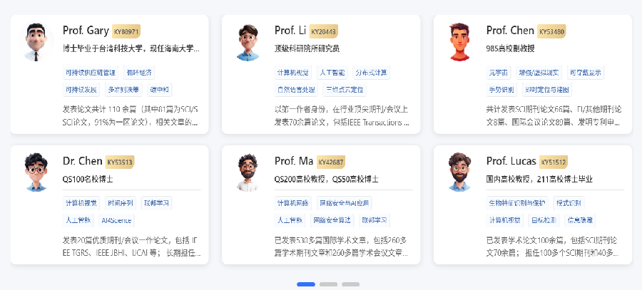 一段话简介:艾思云课堂导师团队来自艾思科蓝全球智库平台,平台汇聚国内外知名智库专家,涵盖全学科各领域一线学者。根据学员的基础与需求,利用大数据为专家学者智能分配科研任务,解决学员科研问题,提升科研能力。