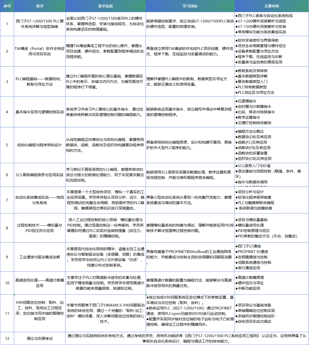 本课程是一门面向工业自动化工程师、电气技术人员及在校学生的系统性综合培训,围绕西门子主流中型PLC——S7-1200和S7-1500系列展开。课程设计遵循“从核心到外围,从基础到高端”的循序渐进原则,旨在帮助学员构建完整的PLC知识体系,并具备解决复杂工业自动化问题的综合能力。