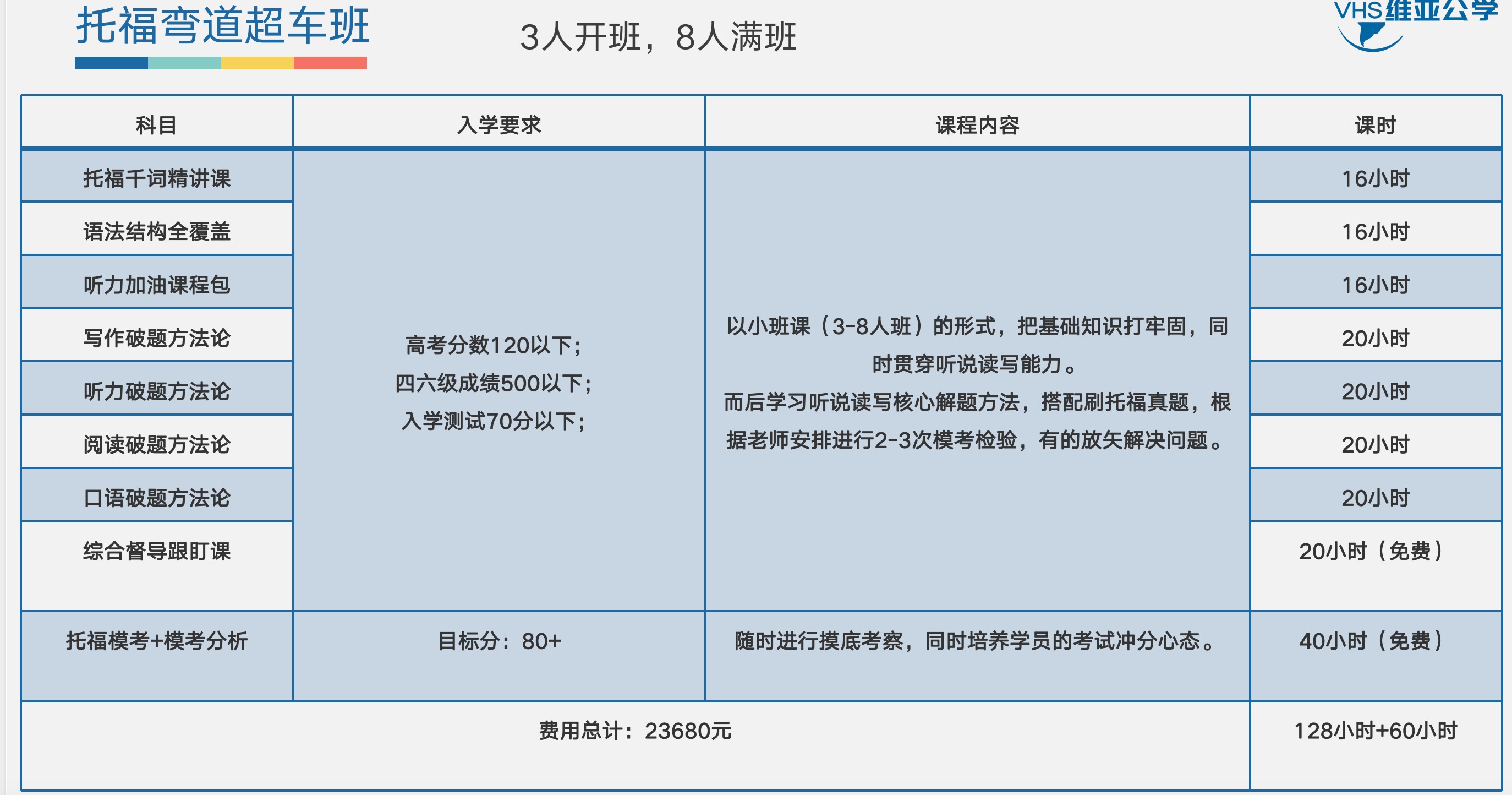 一、课程介绍 适用学员:有标准化考试实考经验,且雅思成绩达6分及以上,或托福成绩达85分及以上的学生。 核心优势: 1.针对雅思/托福各类题型,专项讲解解题技巧,搭配大量真题练习,帮助学生熟练、高效地完成题目并提升正确率。 2.采用“讲练结合+难题精讲”模式,逐一突破考试考点与难点,助力学生在短期内提升解题速度与准确率。 二、课程设置 课程按阶段递进设计,覆盖听、说、读、写四大模块,具体内容如下: 阅读:分阶段积累词汇,词汇量范围从初二水平逐步过渡至大学四级水平,确保所学词汇能直接衔接雅思、托福考试,兼具实用性与专业性。 听力:分阶段开展精听训练,素材围绕生活及学术类主题展开,主题涵盖生物、地质、语言学、人体大脑、音乐、艺术等多个领域。 口语:分阶段提升表达能力,从基础的日常寒暄、点餐、日常对话,逐步进阶到完整描述经历或故事,并能清晰表达个人见解与立场。 写作:分阶段强化写作能力,先训练写出连贯、正确的简单句,再逐步过渡到针对上述主题完成150200词左右的论证性文章,同时提升英语词汇运用能力。 三、课程特色 每日词汇积累:聚焦能直接衔接雅思、托福的专业英文词汇,同步提升学生的词汇储备与阅读能力。 专业文章解读:通过训练,让学生能听懂“自闭症研究”“花疗法”“男女性大脑区别”等具有较高专业性的文章。 每日写作审查:指导学生针对英文主题完成200字以上的论证性文章,并熟练运用英文基础语言知识。 流畅英文描述:帮助学生实现熟练、自然地描述完整经历或故事,清晰表达个人见解与立场。 难度无缝衔接:从听、说、读、写、词汇、语法六个维度,确保学生能顺利衔接后续雅思、托福阶段的课程难度。