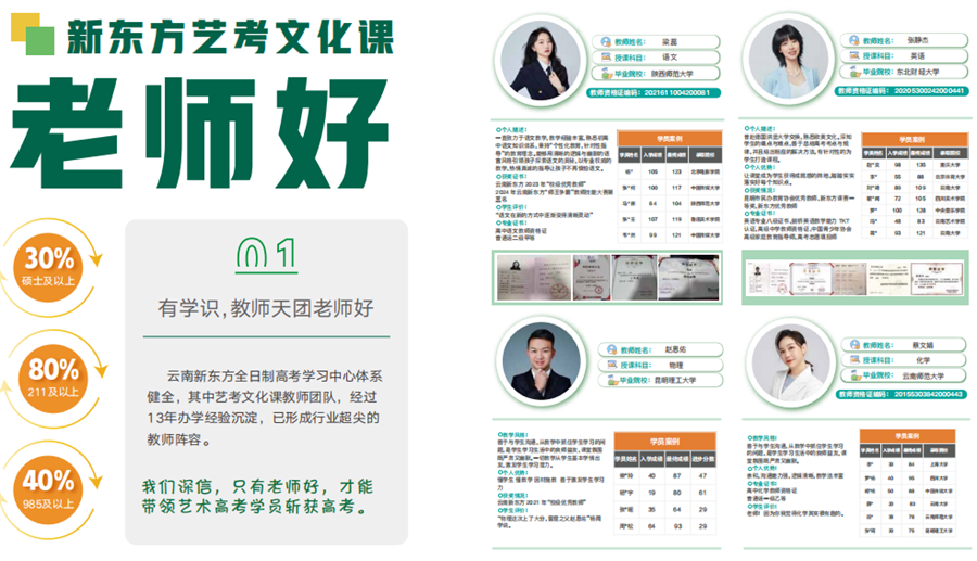 高考中未能正常发挥自身水平、成绩不理想的应届高三毕业生; 因志愿填报出现差错,选择复读以争取更好结果的考生; 艺术类考生文化课成绩欠佳,急需加强文化课学习的群体; 以重点大学为目标,决心奋力冲刺的备考学生。 云南新东方精心打造的课程,是专门为那些高考成绩不理想、未达到心中预期的学生量身定制的。通过构建系统化的知识体系,实施精准有效的提分策略,助力学生在短短一年时间里,实现成绩的显著提升与突破。 基础巩固课程:聚焦学生在高一、高二阶段基础知识掌握不扎实的问题,开展有针对性的补习工作,助力学生筑牢基础,为后续的复习冲刺和高分提升筑牢根基。 重点强化课程:针对高考中的核心考点和疑难知识点,进行深度剖析与强化训练,加深学生对知识的理解深度和运用熟练度,助力学生突破学习困境,实现成绩提升。 模拟实战课程:定期开展模拟高考的实战演练,让学生提前熟悉高考的完整流程、时间分配以及题型设置,锻炼学生在高考压力下的应试心理素质,提升学生的实际应考能力。 心理疏导课程:复读生往往承受着较大的心理负担,心理辅导课程能够帮助学生有效缓解焦虑、紧张等不良情绪,调整学习心态,增强学习自信心,以积极乐观的态度迎接复读挑战和高考检验。 个性化定制方案:依据每位学生的具体学习情况和实际需求,为其量身打造专属的复习计划,精准找出学生的薄弱知识点,并根据学习进展动态调整学习节奏和进度。 优质师资团队:授课教师均拥有丰富的高三教学经验,对复读生的学习特点和心理状态有深入了解,擅长挖掘学生的学习潜力,精准攻克学习重难点。 全真模拟演练:定期组织全真模拟高考考试,严格遵循高考的标准和要求进行,让学生提前适应高考的紧张氛围和考试节奏,及时调整备考策略和方法。 全程学习跟踪:为每位学生建立详细的学习档案,全程记录学生的学习过程和成长轨迹,定期与家长沟通交流学生的学习情况,实现家校紧密合作,共同助力学生成长。一、适合对象
