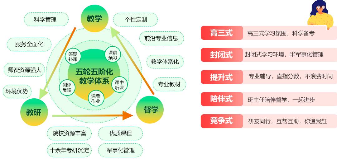依托全国教研体系,英语、政治标准化教学成熟,单词记忆用“词根词缀+江南水乡意象联想”(如“bridge”关联苏州园林拱桥),适合基础中等、需系统梳理知识的考生;但专业课需额外对接第三方资源。
