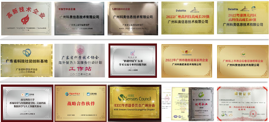 公司荣获国家“高新技术企业”,广东省“创新型企业”、“专精特新企业”、“广东省科技社团创新基地”、“德勤-广州高科技高成长20强”、“德勤-粤港澳大湾区高科技高成长40强”、“广州市隐形冠军”和“广州拟上市高企后备百强”等,通过ISO 9001认证。